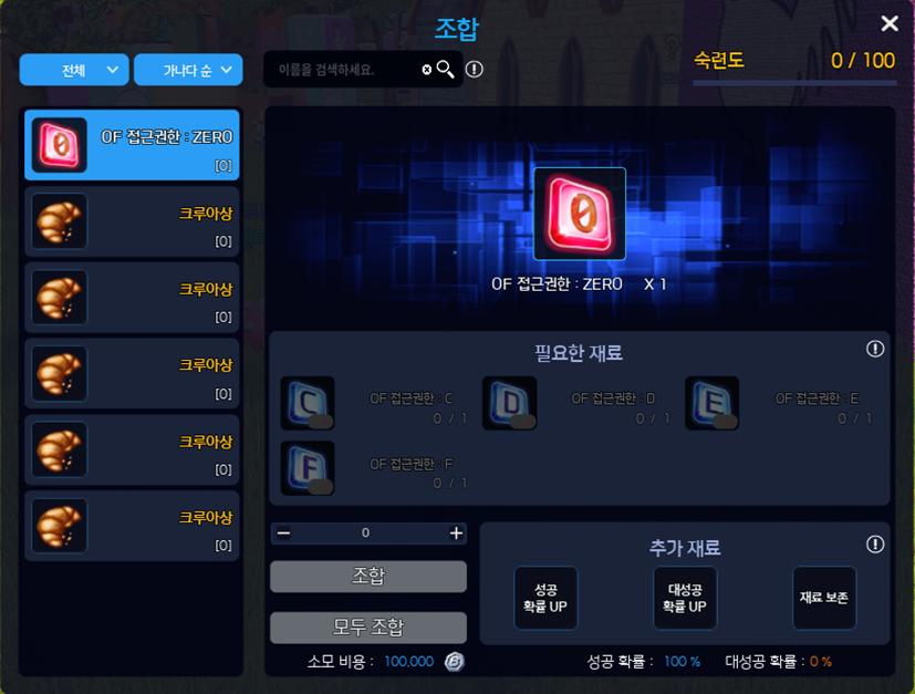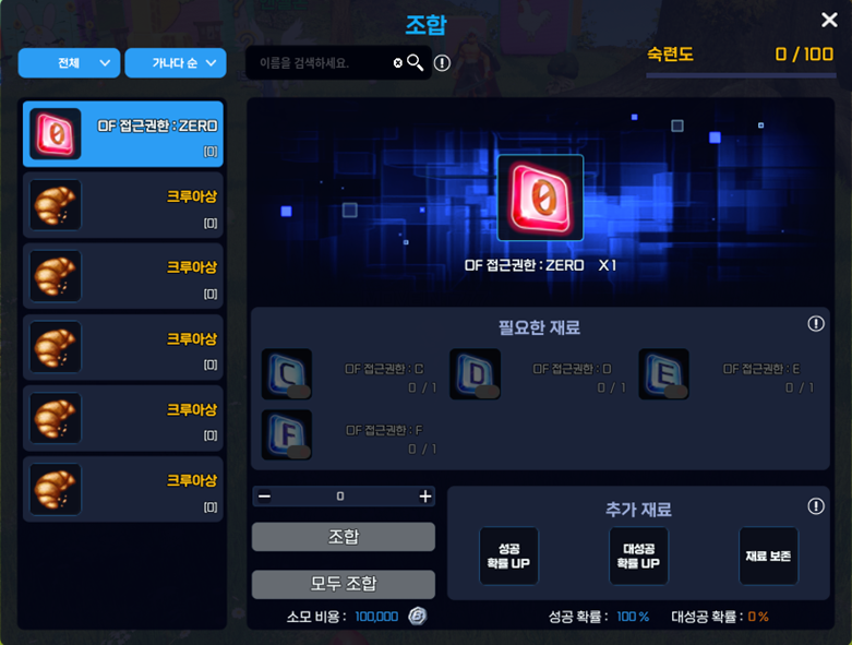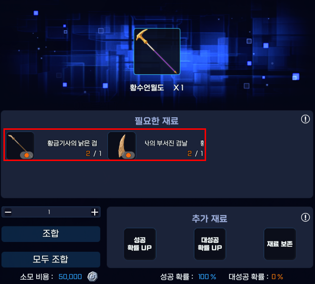 ※조합 시 거래 불가 아이템이 우선적으로 사용되며, 결과 아이템은 거래 불가로 획득됩니다.