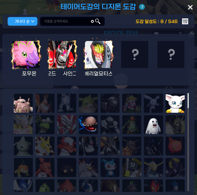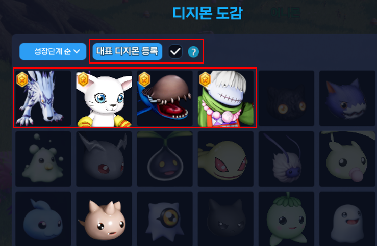획득한 디지몬에 한해, 기존 디지몬 도감에서 최대 5마리까지 대표 디지몬으로 설정할 수 있습니다.