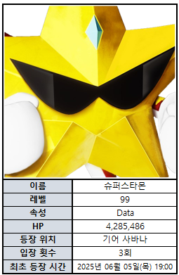 신규 필드 보스 슈퍼스타몬이 등장합니다.