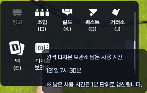 디지몬 보관소 아이콘에 마우스를 올려 원격 디지몬 보관소의 남은 사용 시간을 확인할 수 있습니다.