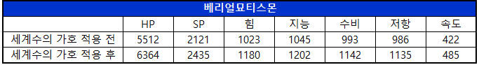 내용 : 세계수가 특정 디지몬에게 일정 기간동안 세계수의 가호를 내립니다.
