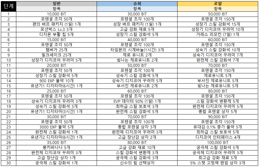 - 슈퍼 디지패스, 로열 디지패스 보상 변경