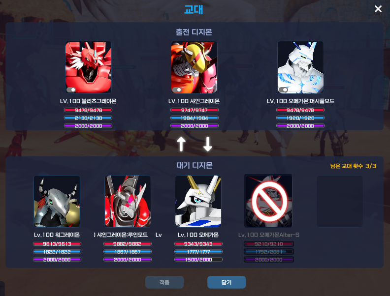 내용 : 자신이 설정한 배틀 디지몬과 서브 디지몬 구성을 저장하고, 한 번에 빠르게 불러와 적용할 수