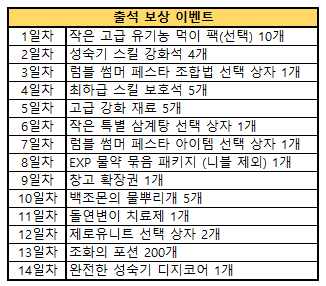 내용 : 이벤트 기간 동안 출석 이벤트가 진행됩니다.
