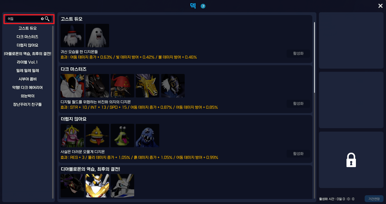 - 덱 검색 시 덱 효과 또는 디지몬 이름을 통해 덱을 검색할 수 있도록 개선됩니다.
