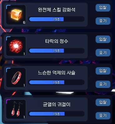 파티원들은 입찰 시작 시 참여 또는 포기를 선택할 수 있습니다.