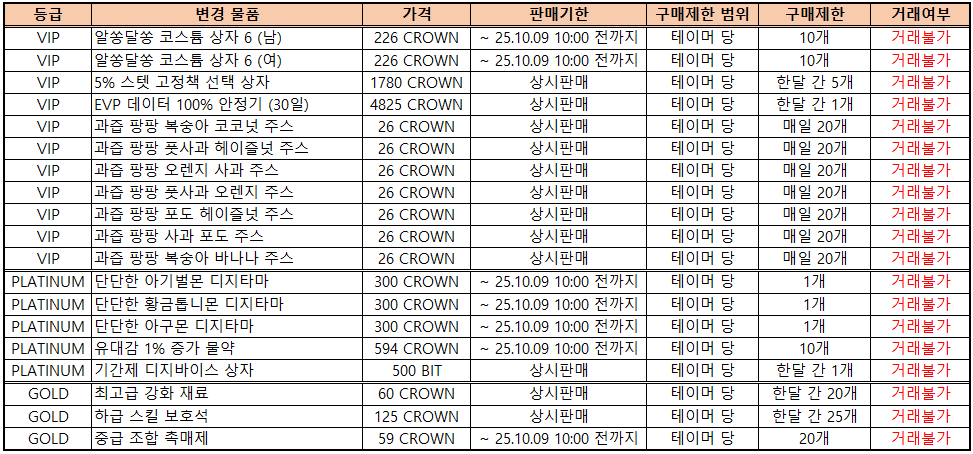 - VIP 상점에 신규 판매 물품이 추가됩니다.