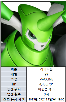 내용 : 슈퍼스타몬 필드 레이드가 2025년 09월 25일(목)에 종료됩니다.