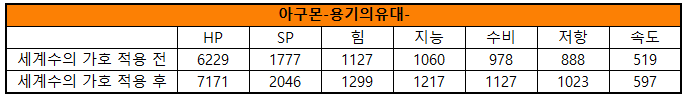 ※ 세계수의 가호는 기본 스테이터스를 약 15% 정도 증가시켜 줍니다.