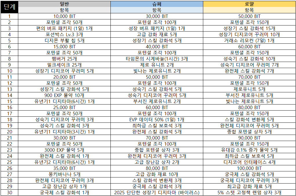 내용 : 디지패스 2025 시즌 9가 종료되고 2025 시즌10이 시작됩니다.