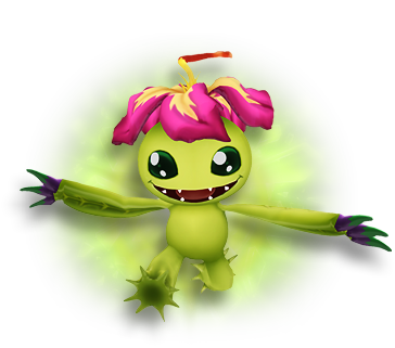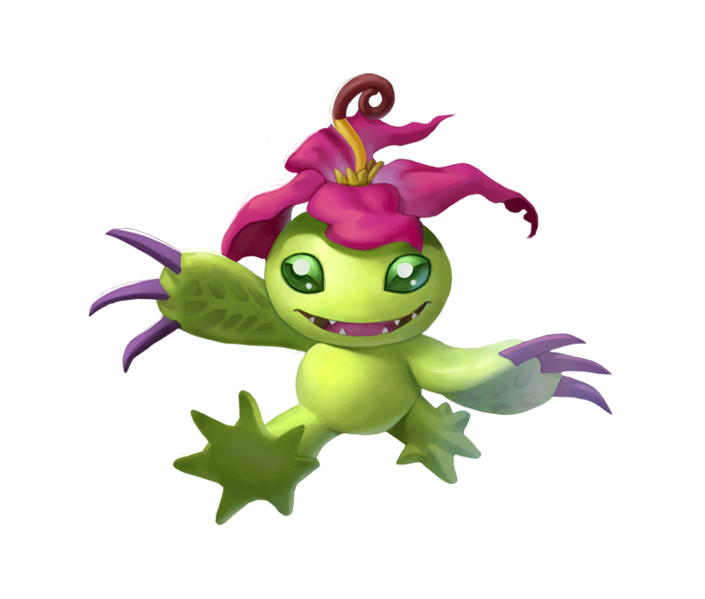 머리에 열대지방의 꽃을 피운 식물형 디지몬.