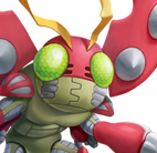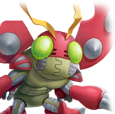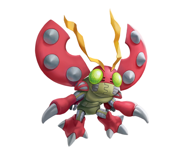 딱딱한 등딱지를 가진, 아직 공격성이 낮은 곤충형 디지몬.