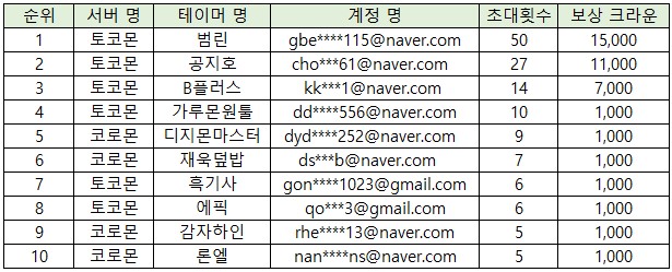 이벤트에 참여해 주신 많은 테이머님들께 감사 말씀 드리며,