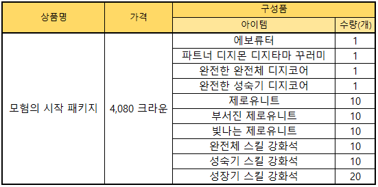 ▶ 모험의 시작 패키지 상품 안내