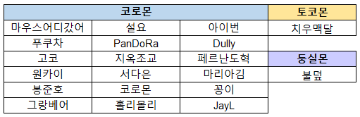 재밌고 특색있는 디지몬 트리오를 구성해주신 20명의 테이머님을 선정하였습니다.