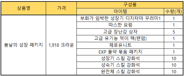 ▶ 봄날의 성장 패키지 상품 안내