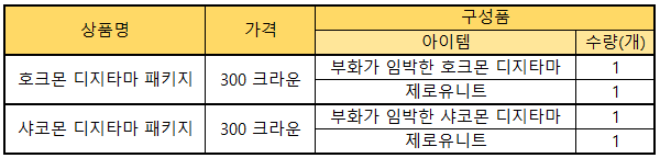 ※ 판매 기간 동안 테이머 당 1회 구매 가능합니다.