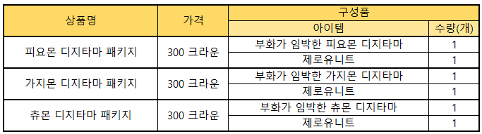 ※ 피요몬 디지타마 패키지는 점검 후 구매 가능합니다.
