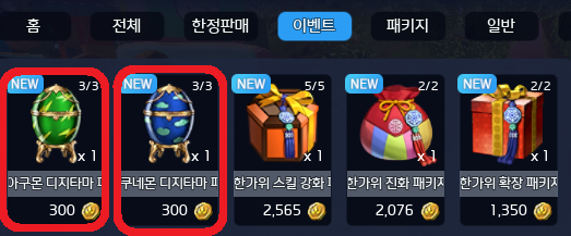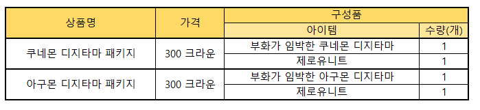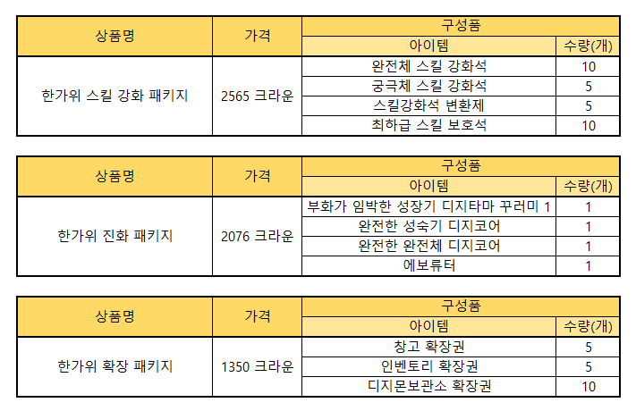 ※ 판매 기간 동안 한가위 확장 패키지와 한가위 진화 패키지는 테이머 당 2회 구매 가능합니다.