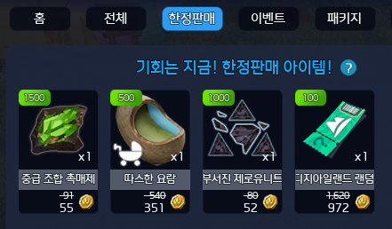 ※ 각 패키지는 2주 동안 3회 구매 가능하며, 2주마다 패키지가 변경됩니다.