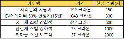 ▶ 한정 판매 아이템 품목 추가