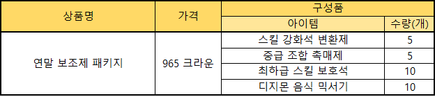 ※ 궁극체 스킬 강화석 : 테이머당 최대 10회 구매 가능합니다.