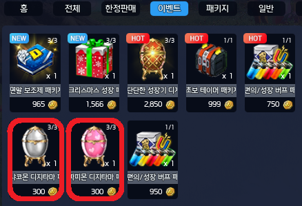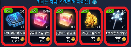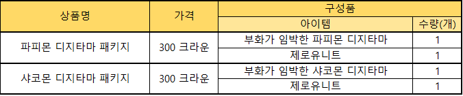 ※ 소서리몬의 지팡이, EVP 데이터 50% 안정기(15일) : 테이머당 최대 2회 구매 가능합니다.