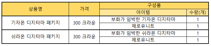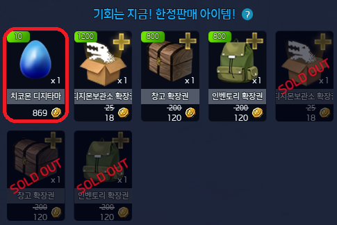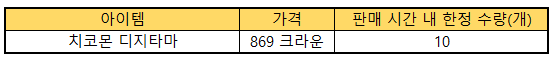 ▶ 한정 판매 아이템 품목 추가(치코몬 디지타마)
