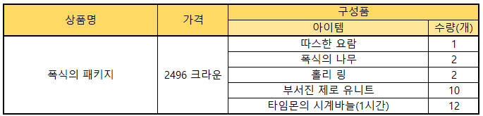 ※ 각 패키지는 2주 동안 3회 구매 가능하며, 2주마다 패키지가 변경됩니다.