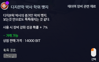 ※ 거래 가능, 파기 가능, 상점 판매 불가한 상품입니다.