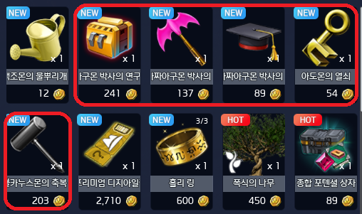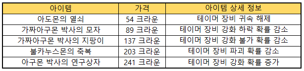 ▶ 테이머 장비 관련 아이템 품목 추가