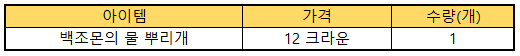 ※ 거래 불가, 파기 가능, 상점 판매 가능한 상품입니다.