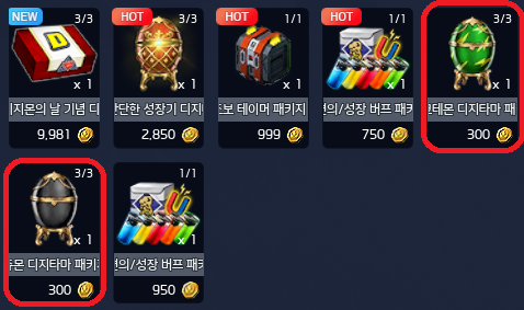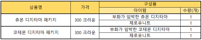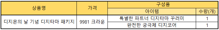 ※ 디지몬의 날 기념 디지타마 패키지는 2주 동안 2회 구매 가능합니다.