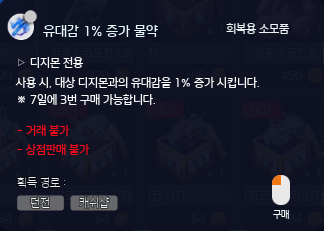 ※ 거래 불가, 파기 불가, 상점 판매 불가한 상품입니다.