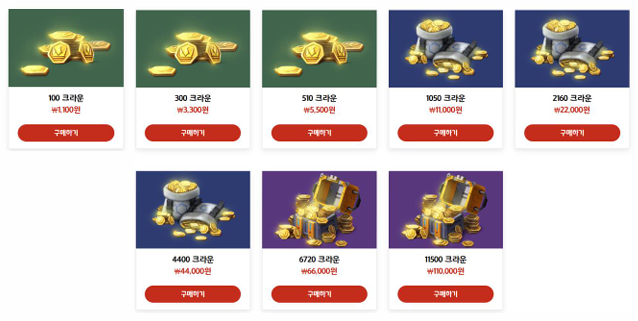 - 구매한 패키지에 대해 30% 추가 크라운이 지급되며, 계정 당 최대 50만원까지 혜택이 적용됩니다.