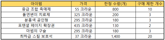 ※ 거래 불가, 파기 불가, 상점 판매 불가한 상품입니다.