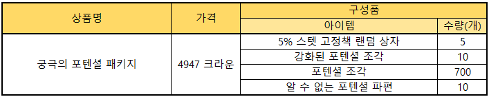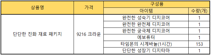 ※ 각 패키지는 2주 동안 3회 구매 가능하며, 2주마다 패키지가 변경됩니다.