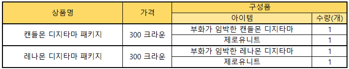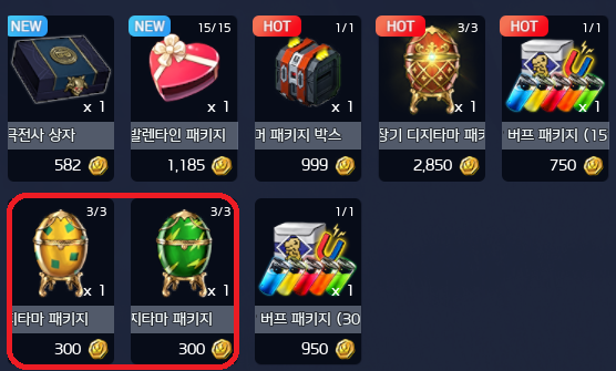 ※ 각 패키지는 2주 동안 3회 구매 가능하며, 2주마다 패키지가 변경됩니다.