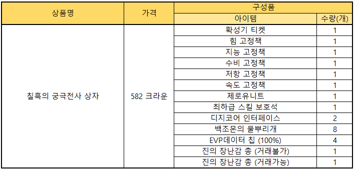 ※ 거래 불가, 파기 불가, 상점 판매 불가한 상품입니다.