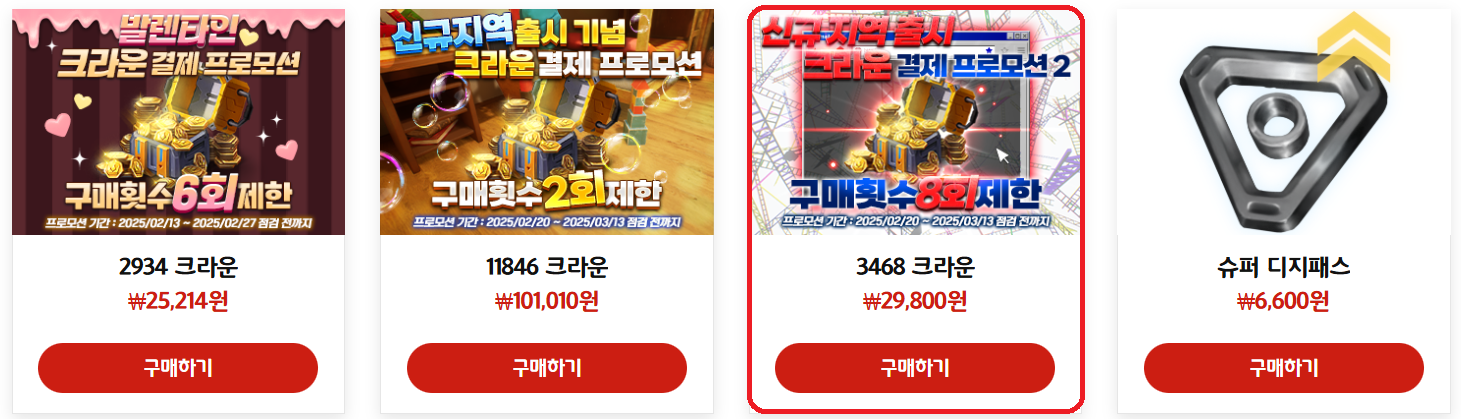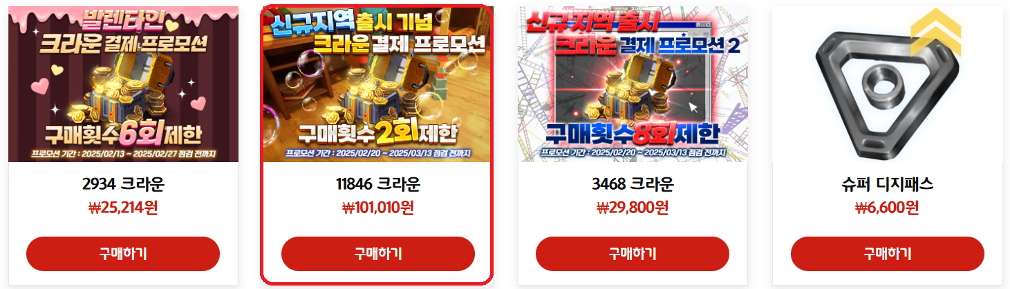 크라운 결제 프로모션 상품은 [공식 홈페이지] - [상점]에서 확인 가능합니다.