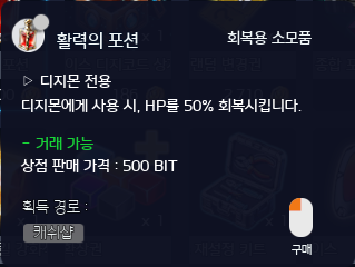 ※ 디지몬에게 사용 시, HP를 50% 회복 시킵니다.