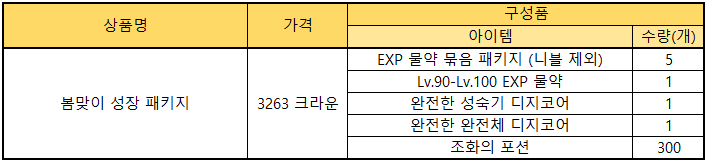 ※ 각 패키지는 2주 동안 3회 구매 가능하며, 2주마다 패키지가 변경됩니다.
