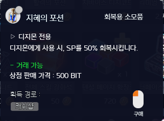 ※ 디지몬에게 사용 시, SP를 50% 회복 시킵니다.
