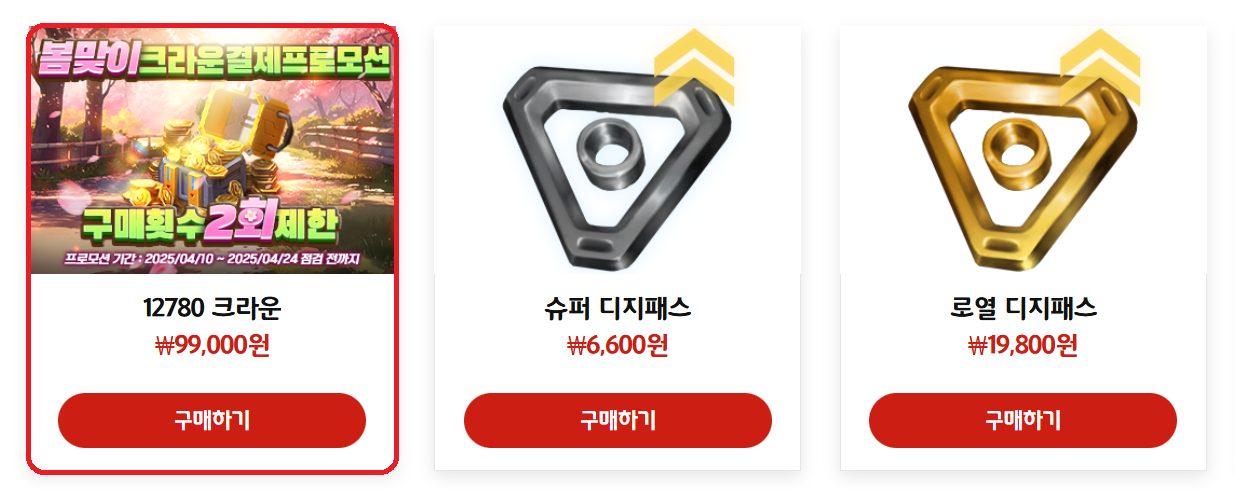 크라운 결제 프로모션 상품은 [공식 홈페이지] - [상점]에서 확인 가능합니다.