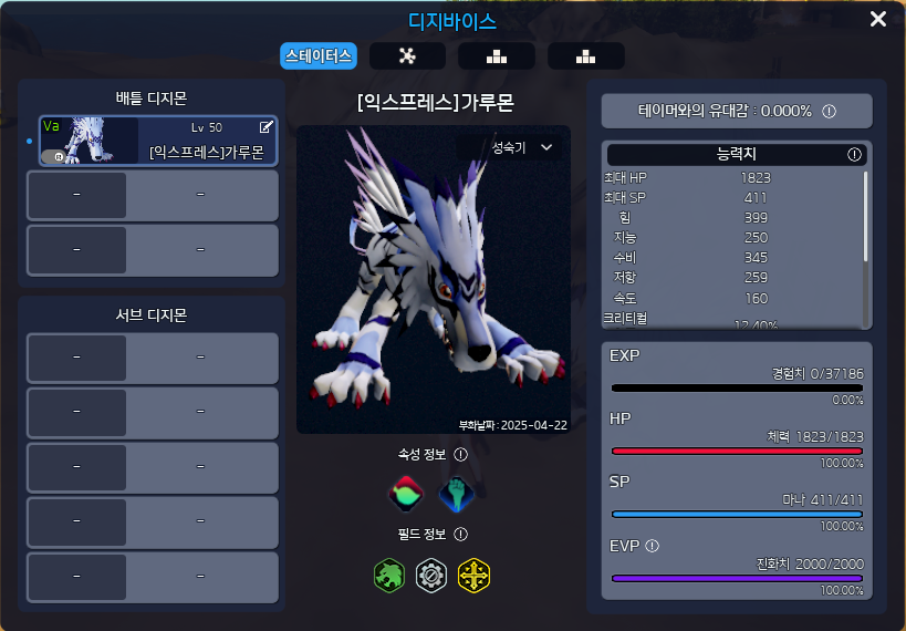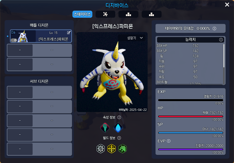 ▶ 디지몬 정보 (익스프레스 디지몬에서 일반 디지몬으로 레벨 업하며 변경됩니다.)