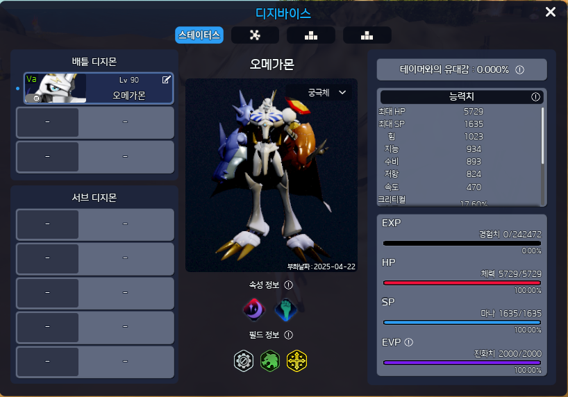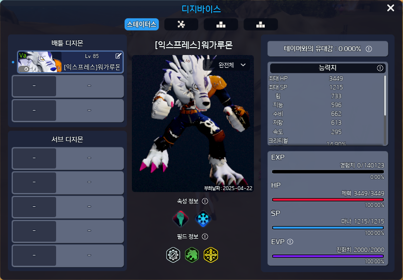 - 85레벨의 완전체 [익스프레스]워가루몬 레벨 업