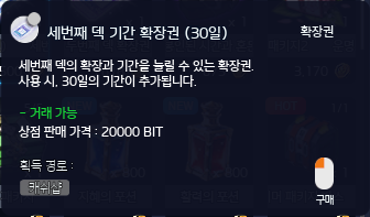 ※ 세번째 덱의 확장과 30일의 기간을 늘릴 수 있는 확장권입니다.