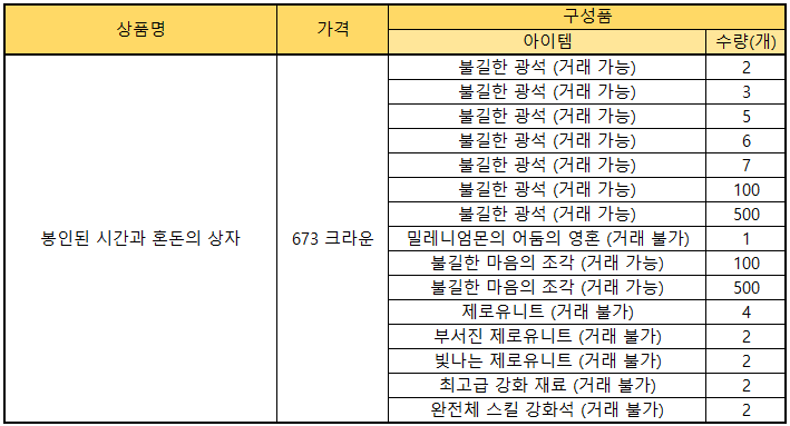 ※ 거래 불가, 파기 불가, 상점 판매 불가한 상품입니다.