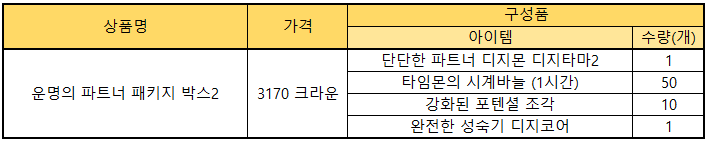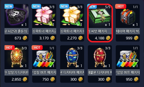 ※ 각 패키지는 2주 동안 3회 구매 가능하며, 2주마다 패키지가 변경됩니다.
