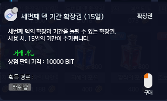 ※ 세번째 덱의 확장과 15일의 기간을 늘릴 수 있는 확장권입니다.